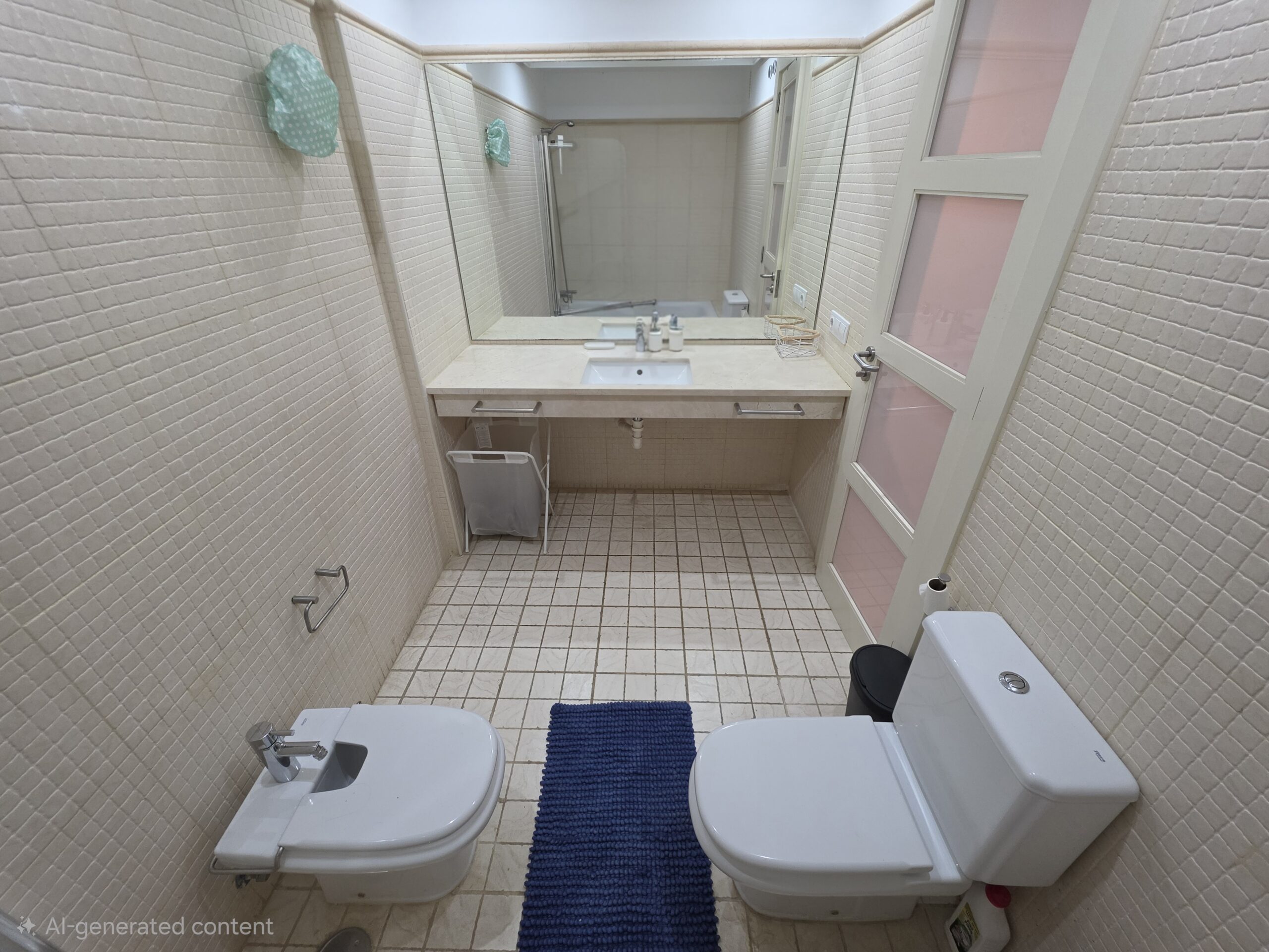 Both bedrooms are well proportioned and include fitted wardrobes, providing comfortable accommodation for owners and guests alike. The principal bedroom benefits from its own en-suite bathroom, while a second bathroom serves the remaining bedroom and guests, offering additional convenience.